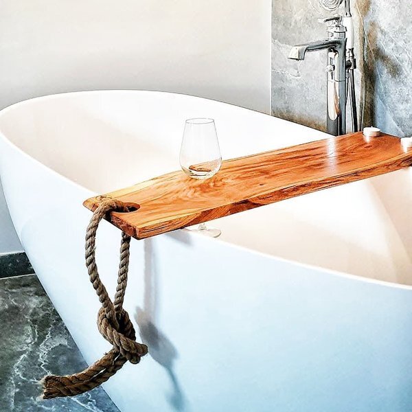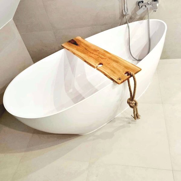 Deski na wannę sprawdzają się także jako elegancki prezent dla bliskiej osoby, który łączy funkcjonalność z estetyką. Można na nich położyć kieliszek wina, świeczki, książkę lub tablet, tworząc komfortowe miejsce do relaksu. Dzięki indywidualnemu wykonaniu możliwe jest dopasowanie długości i szerokości deski do każdej wanny, co zwiększa wygodę użytkowania. Każda deska jest starannie wykończona i szlifowana, aby uniknąć drzazg i zapewnić przyjemny kontakt z dłonią.