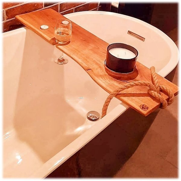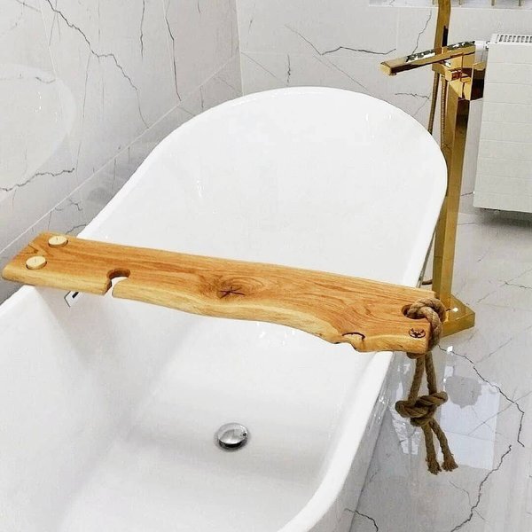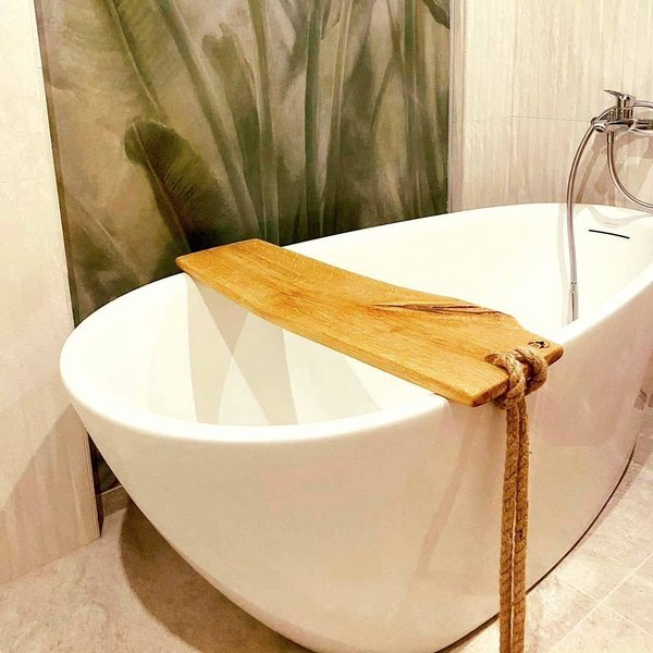 Deski na wannę oferowane w mojej pracowni to eleganckie i praktyczne akcesoria do relaksu w kąpieli. Każda deska jest wykonana ręcznie z dębowego drewna, starannie dobranego pod względem jakości i trwałości. Drewno jest impregnowane naturalnym olejem lnianym oraz twardym woskiem olejnym, co zapewnia odpowiednią ochronę przed wilgocią i wodą, a jednocześnie podkreśla naturalne usłojenie drewna. Dzięki temu deski na wannę są odporne na codzienne użytkowanie i mogą służyć przez wiele lat.